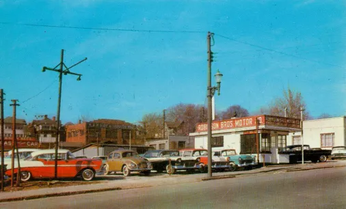 225 Coxe Avenue: Glenn Cab Co., Owl Lounge, NASCO Hillman and Sunbeam Sales, Matthews Ford Used Cars